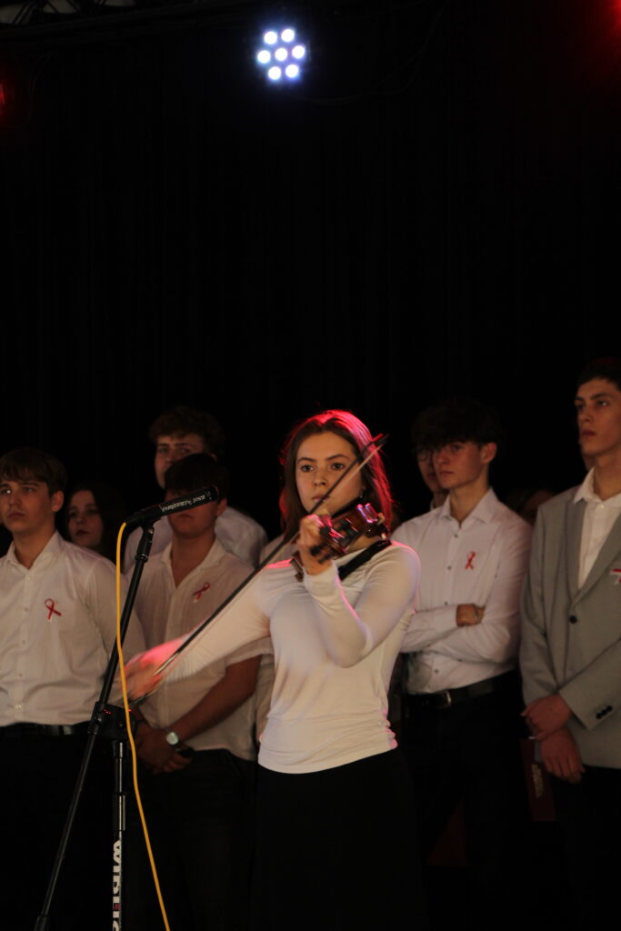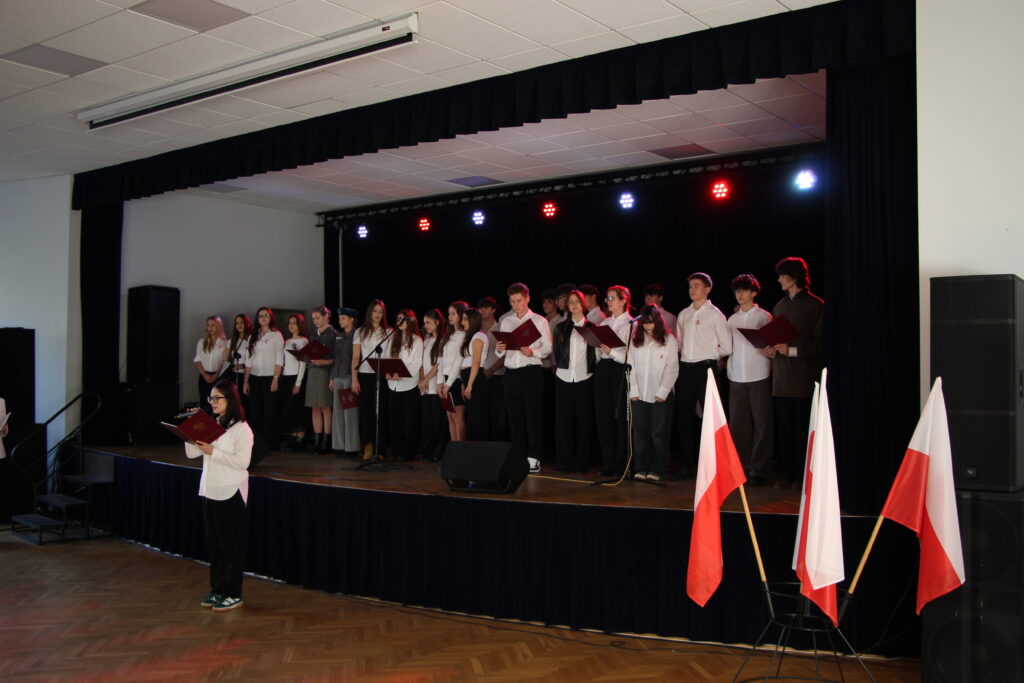 Społeczność I LO mogła zjednoczyć się podczas wspólnego śpiewania pieśni patriotycznych, które już od rana były puszczane w radiowęźle, a podczas uroczystości śpiewane przez klasy organizujące wraz z uczestnikami wydarzenia.